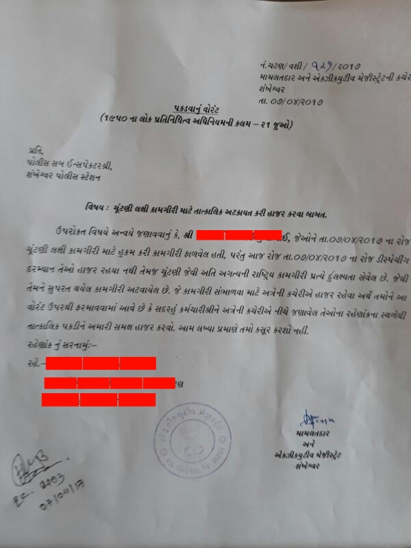 CUNTANI KAMGIRI MA GER HAJAR RAHEVA BADAL DHARAKAD KARI HAJAR KARVA BABAT LETTER.